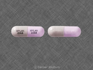 capsule, gray/lavender, imprinted with MYLAN 2268