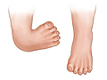 may turn in, and in extreme cases, the bottom of the foot can point up.